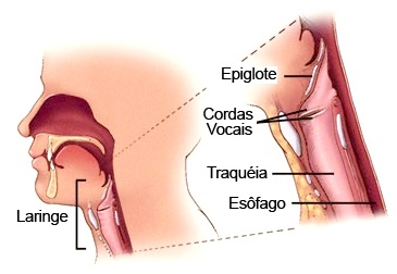 Porção da extremidade superior do sistema respiratório que contém as cordas vocais e constitui o órgão da voz. Consiste em 9 cartilagens unidas entre si por músculos e ligamentos. Na extremidade da laringe encontra-se a epiglote, cartilagem que impede os alimentos de penetrarem na laringe e no dueto respiratório, conduzindo-os diretamente ao esôfago e ao estômago.